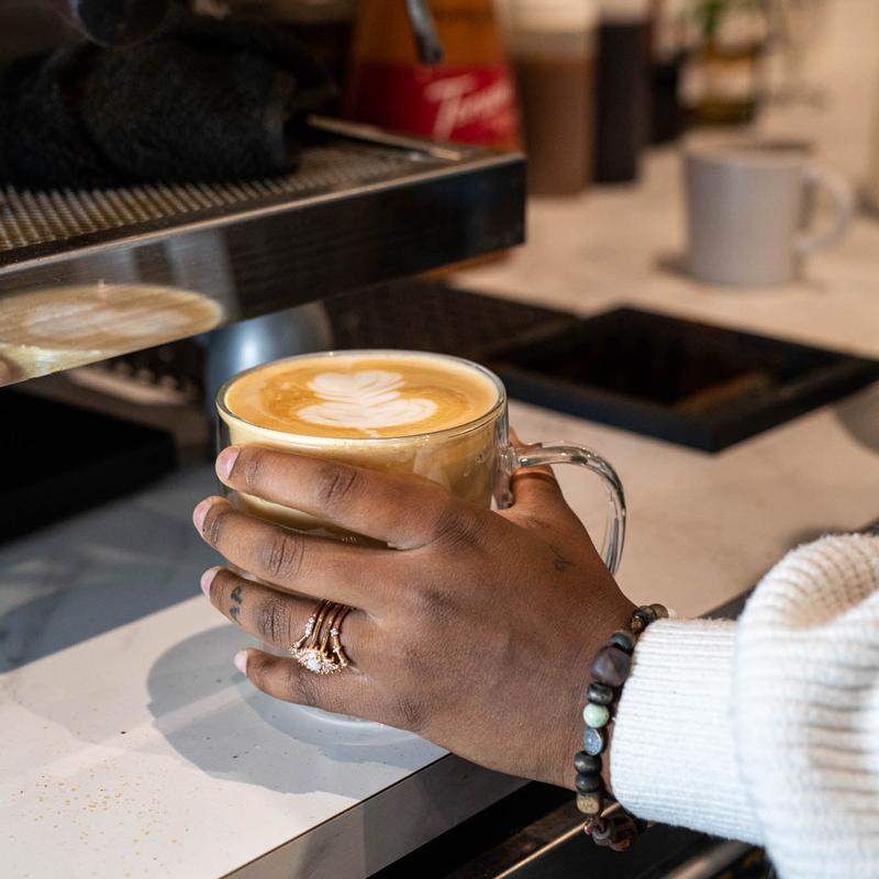 The peppermint mocha latte was amazing! This place is so cute and everything I have tried so far has been very delicious. The staff is friendly and greets everyone with a warm smile and hello every time you walk through the door. I love this place so much and highly recommend it for incredible milkshakes and coffee!